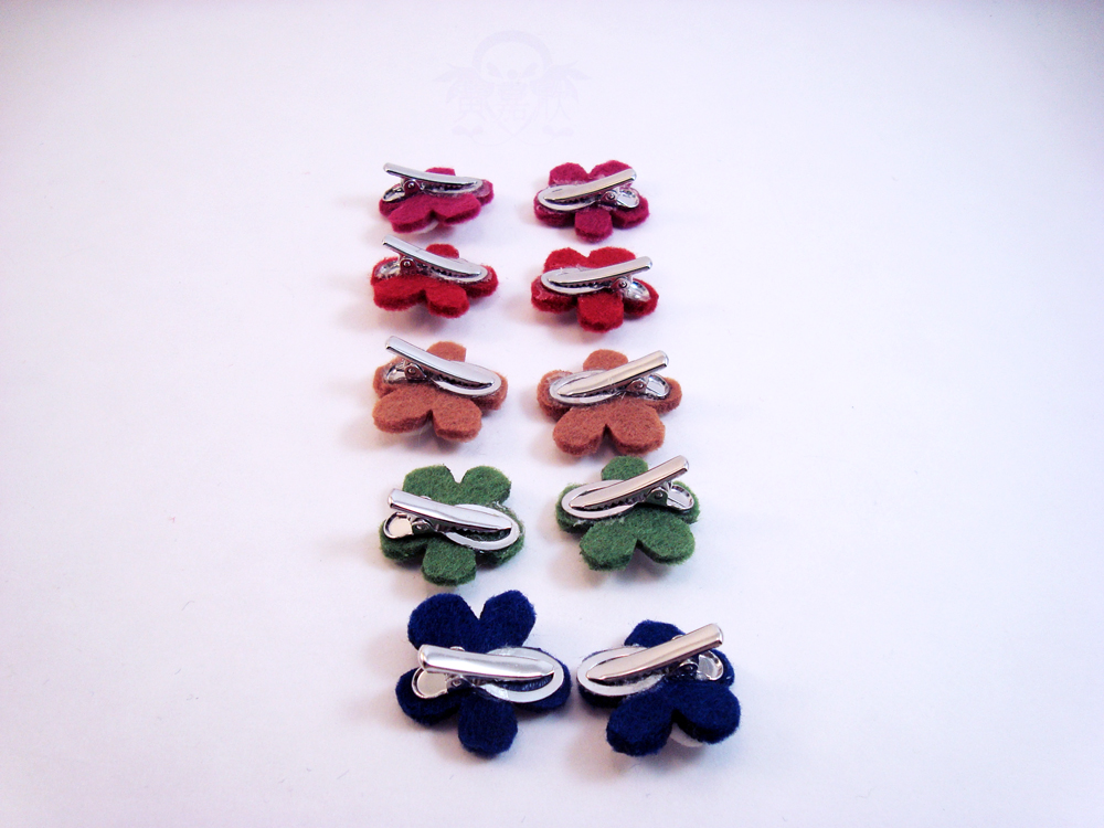 Now your little one can wear flowers hair in a multitude of colors! The felt flowers are actually upcycled Christmas ornaments! I think they look so much cuter as hair accessories. :) Each flower is securely affixed to a silvertone mini metal alligator clip on the back (see last photo).